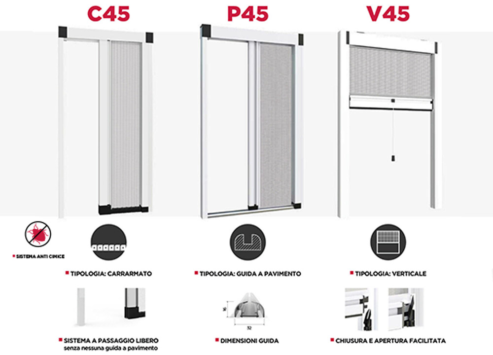 Il terzo modello delle nostre fantastiche zanzariere Levante che vi presentiamo è il Verticale V45 della serie V.