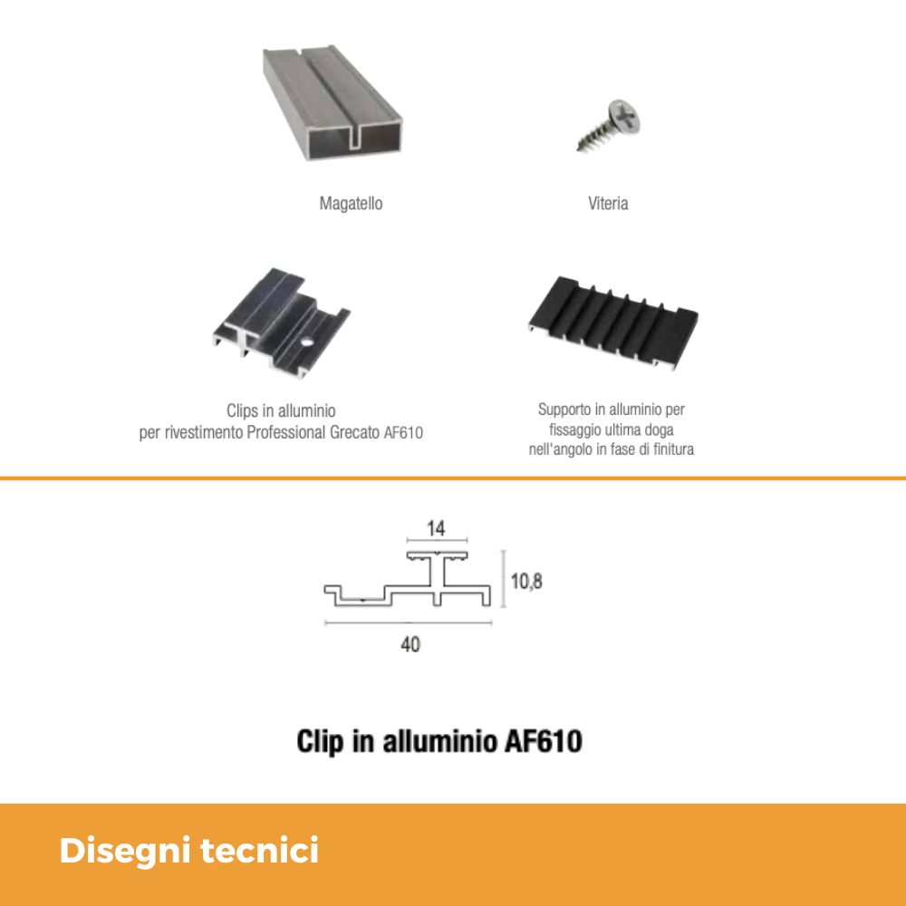 - AF609 – Clip in alluminio per rivestimento Professional | 37×40 mm