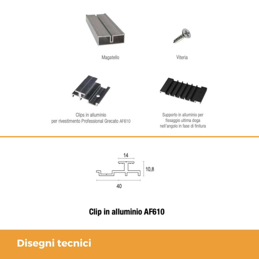 - AF610 – Clip in alluminio per rivestimento Grecato | 33×40 mm