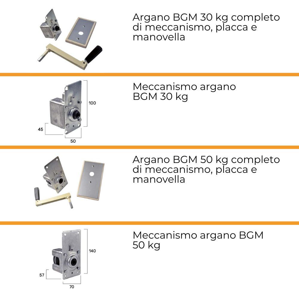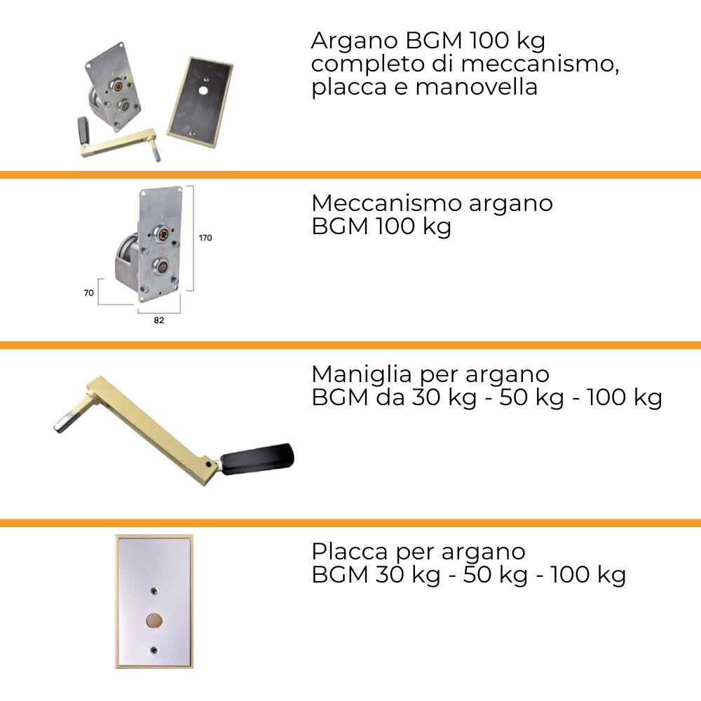 Compatibile con argani BGM da 30 kg, 50 kg e 100 kg.