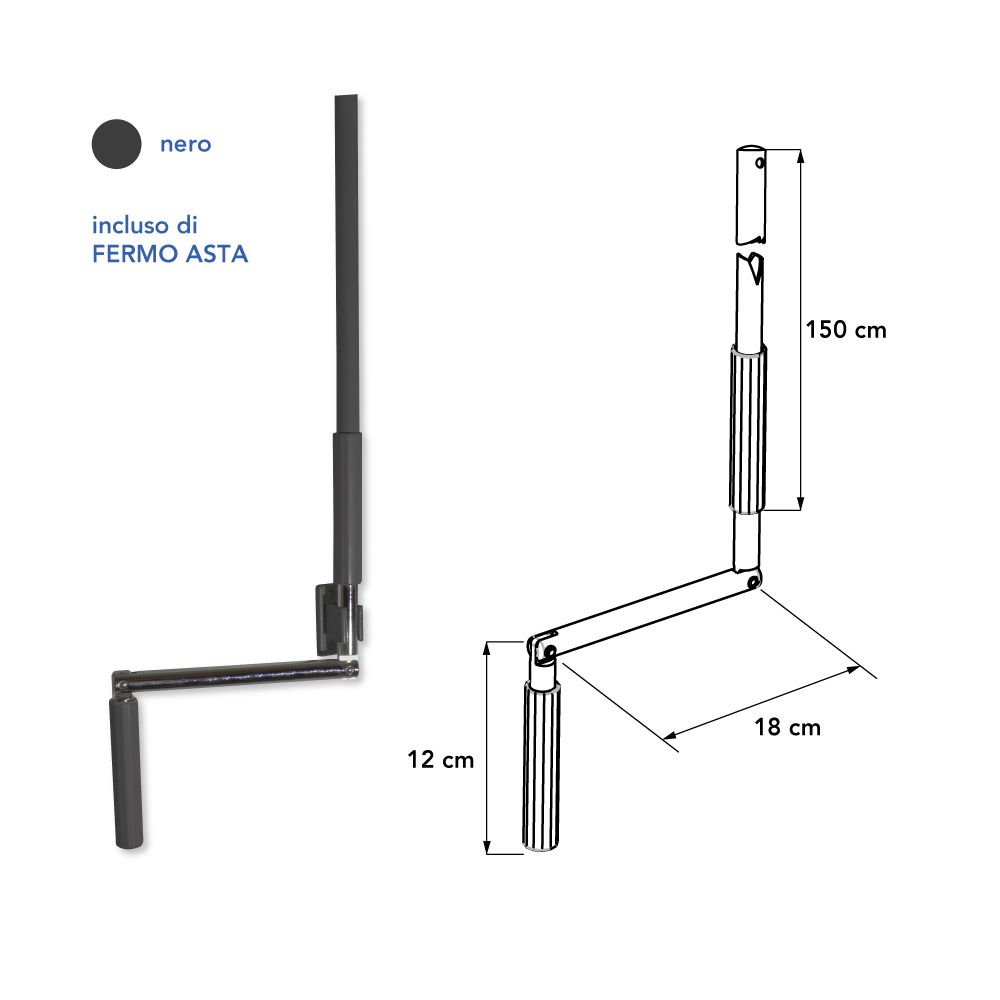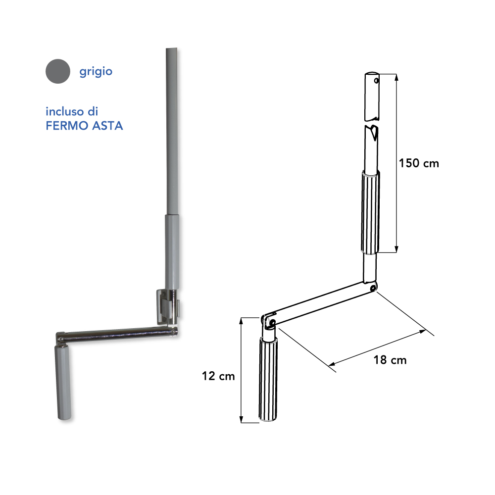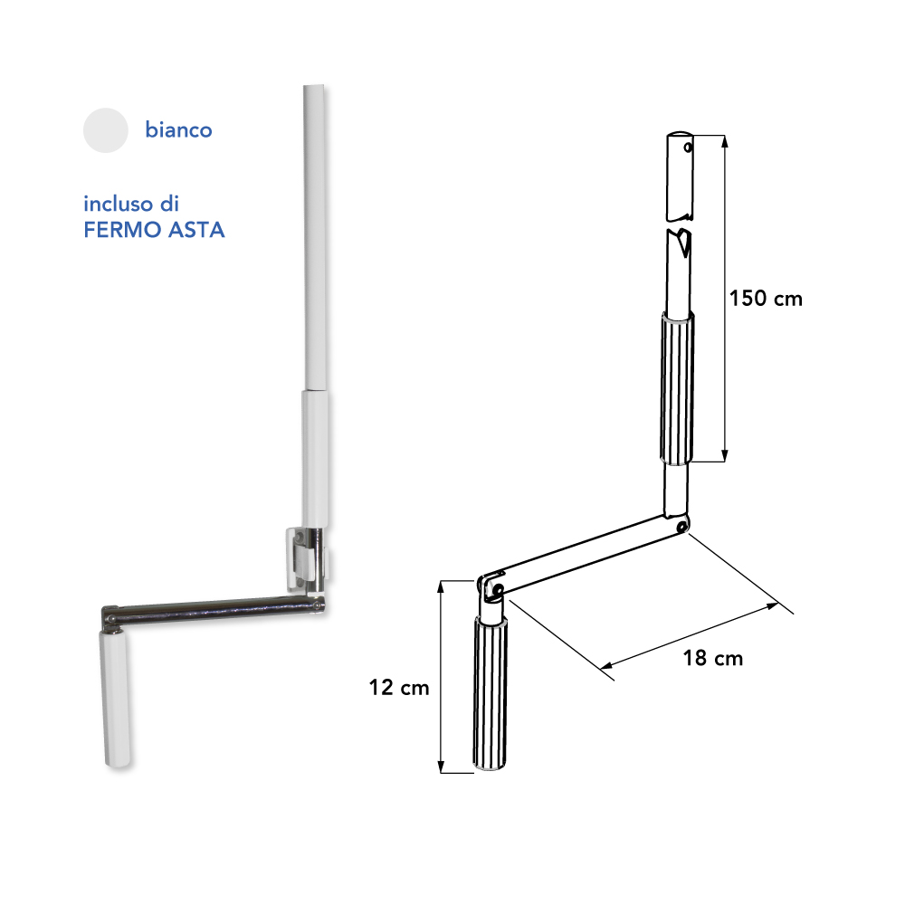 Disponibile in tre colori: bianco, grigio e nero. Include fermo asta.