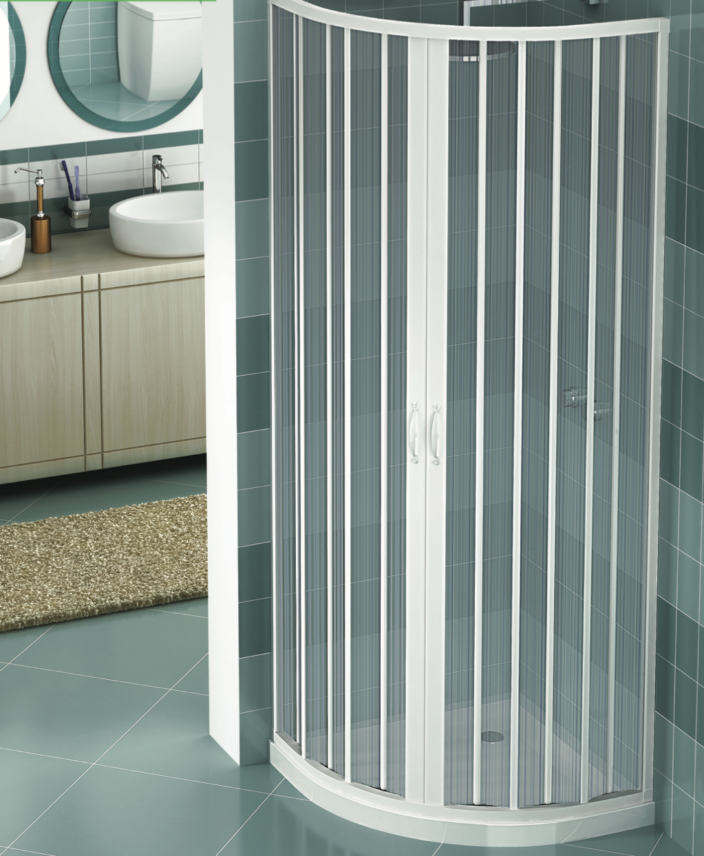Box Doccia Pinto Scorpione Giove Semicircolare Due Ante Apertura Centrale Scorrevole a Soffietto in PVC riducibile