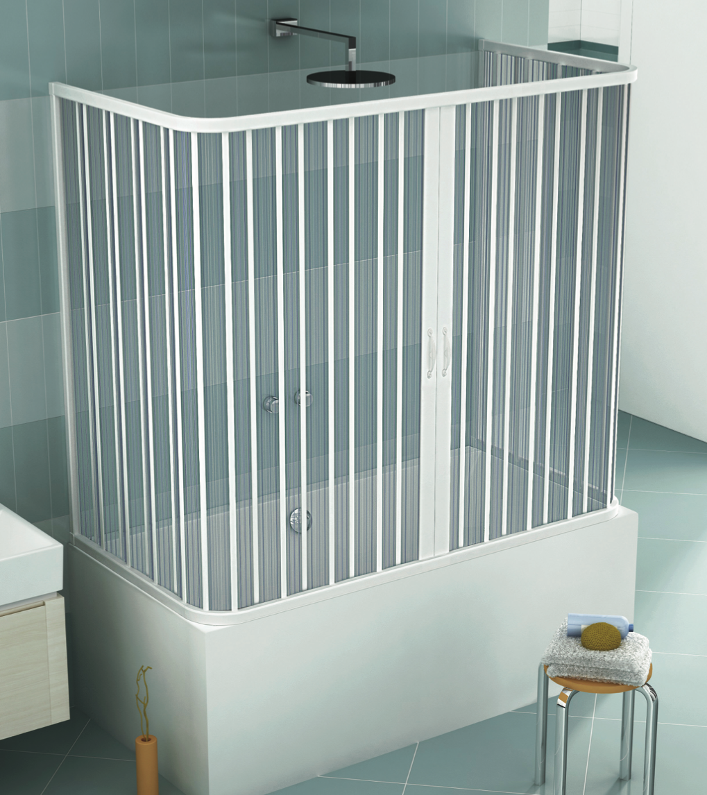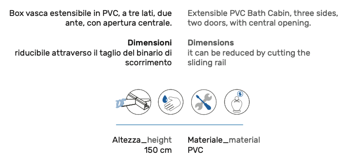 Box Vasca Pinto Venusia Nicla 3 Lati 2 Ante Apertura Centrale Scorrevole a Soffietto in PVC riducibile.