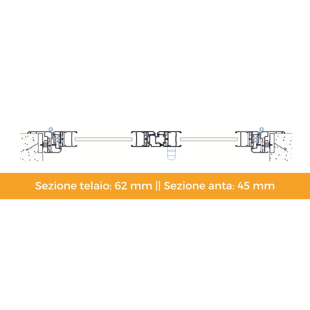 β’Telaio e Anta Piana a Filo: La particolaritΓ del telaio complanare crea un profilo uniforme che valorizza lβestetica della facciata, donando un look pulito e lineare.