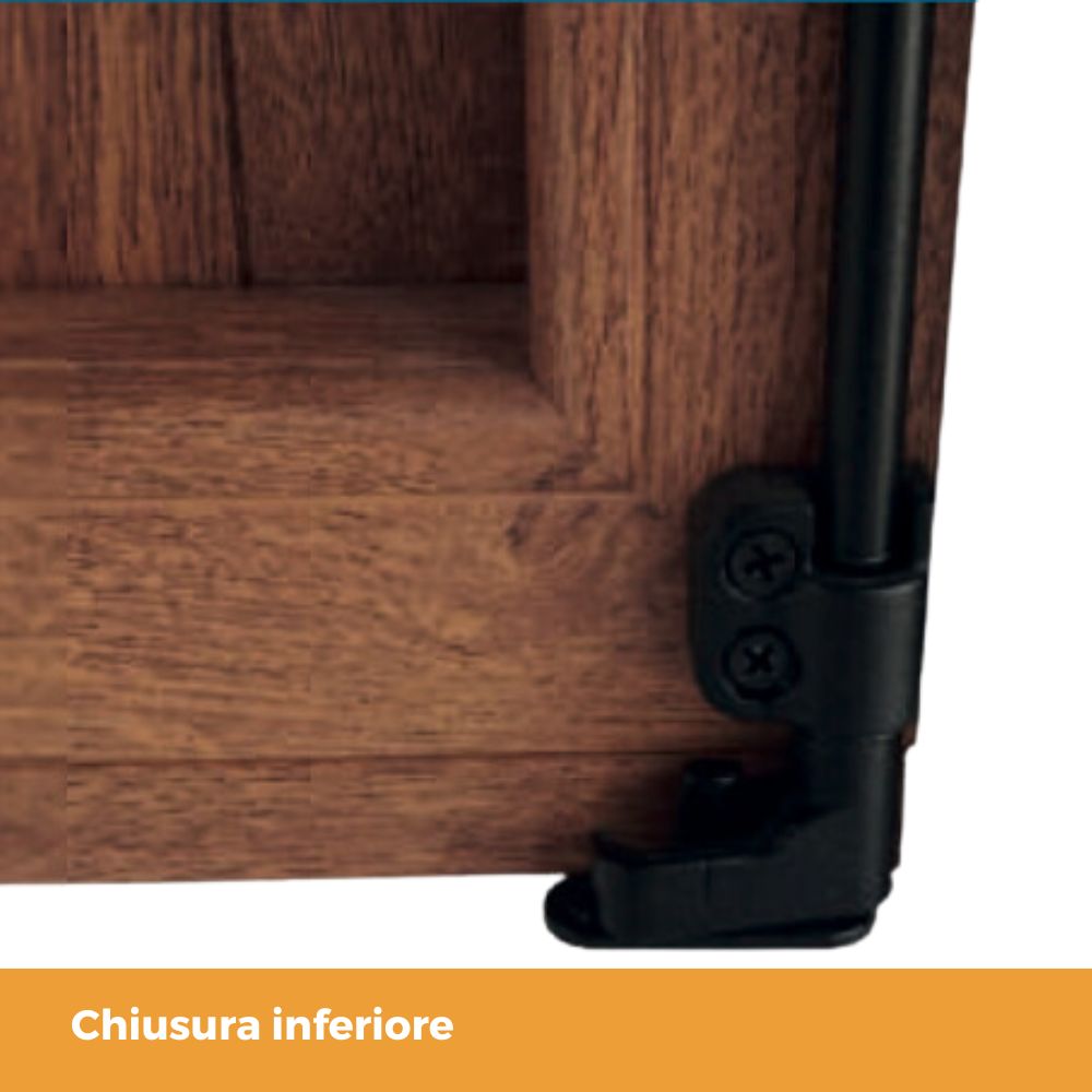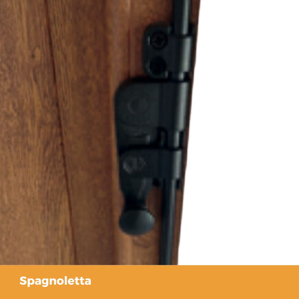 β’Chiusura Spagnoletta a Leva: Solida e sicura, disponibile in nero per un tocco di classe.