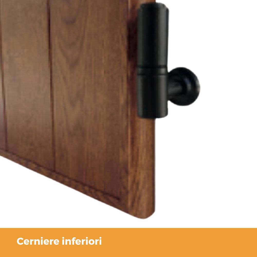 A richiesta: bandelle regolabili e cardini da 120mm e 240 mm, ferramenta storica in tinta.