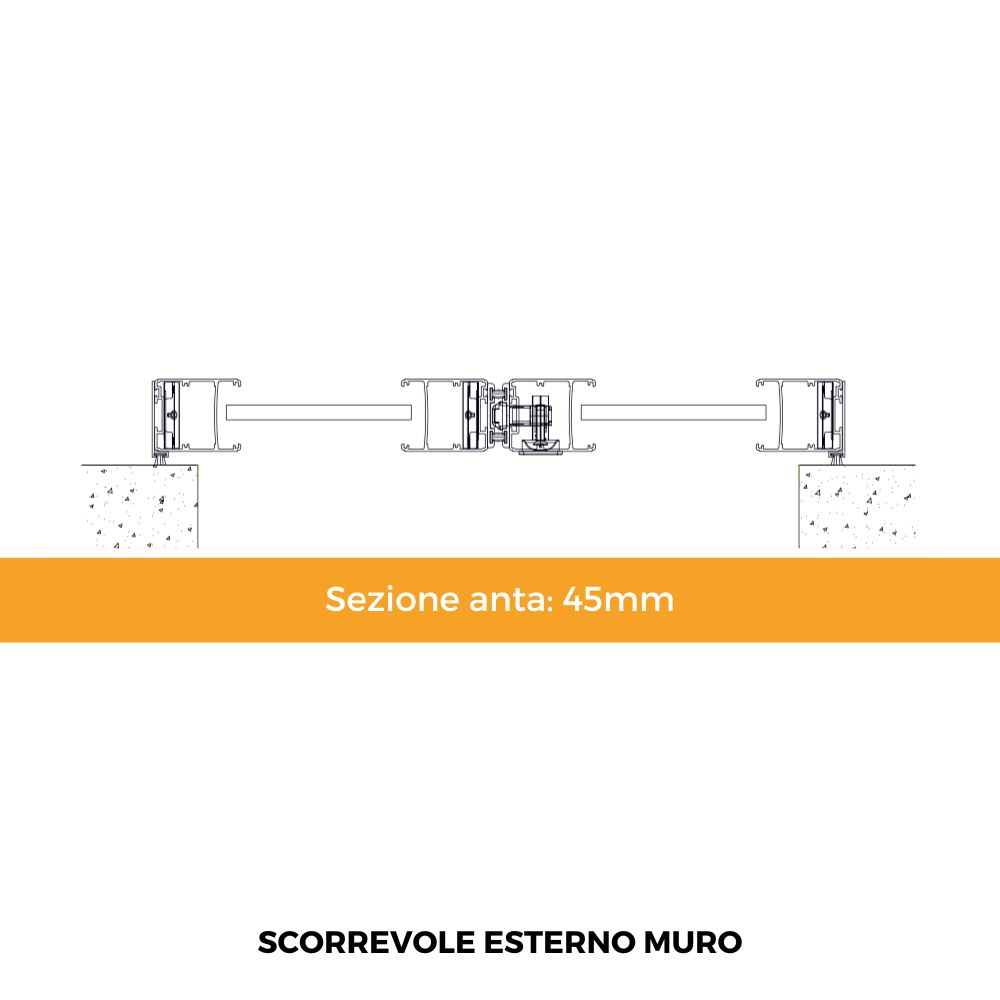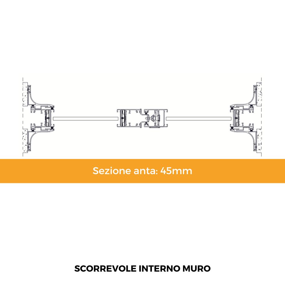 β’Sistema di Scorrimento: Interno al muro, con binari inferiori e superiori dotati di carrelli scorrevoli.