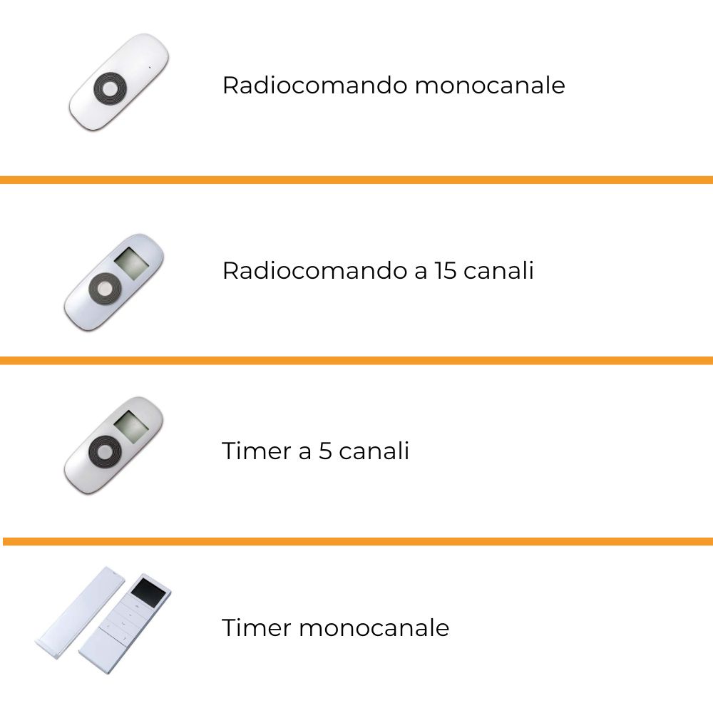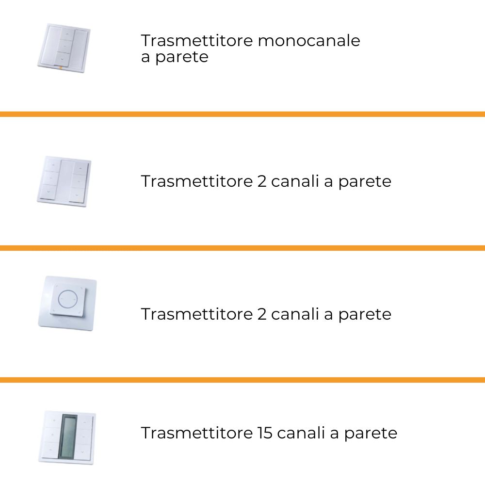 β’Controllo Wireless: Ampia gamma di trasmettitori e radiocomandi per una gestione a distanza senza fili.