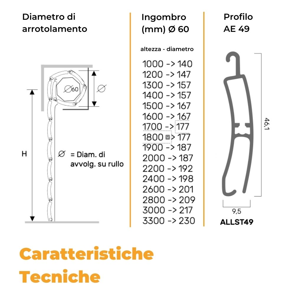 - Diametro di Arrotolamento: Su rullo ΓΈ 60 mm, per un ingombro ottimale e un aspetto estetico.