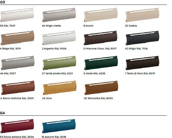 – Tappi d’arresto in tinta per ultima fascia / stecca.