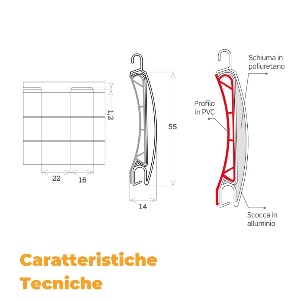 •Accessori Inclusi: Cintino di attacco al telo, terminale in tinta, tappi conici d’arresto, tappi laterali.