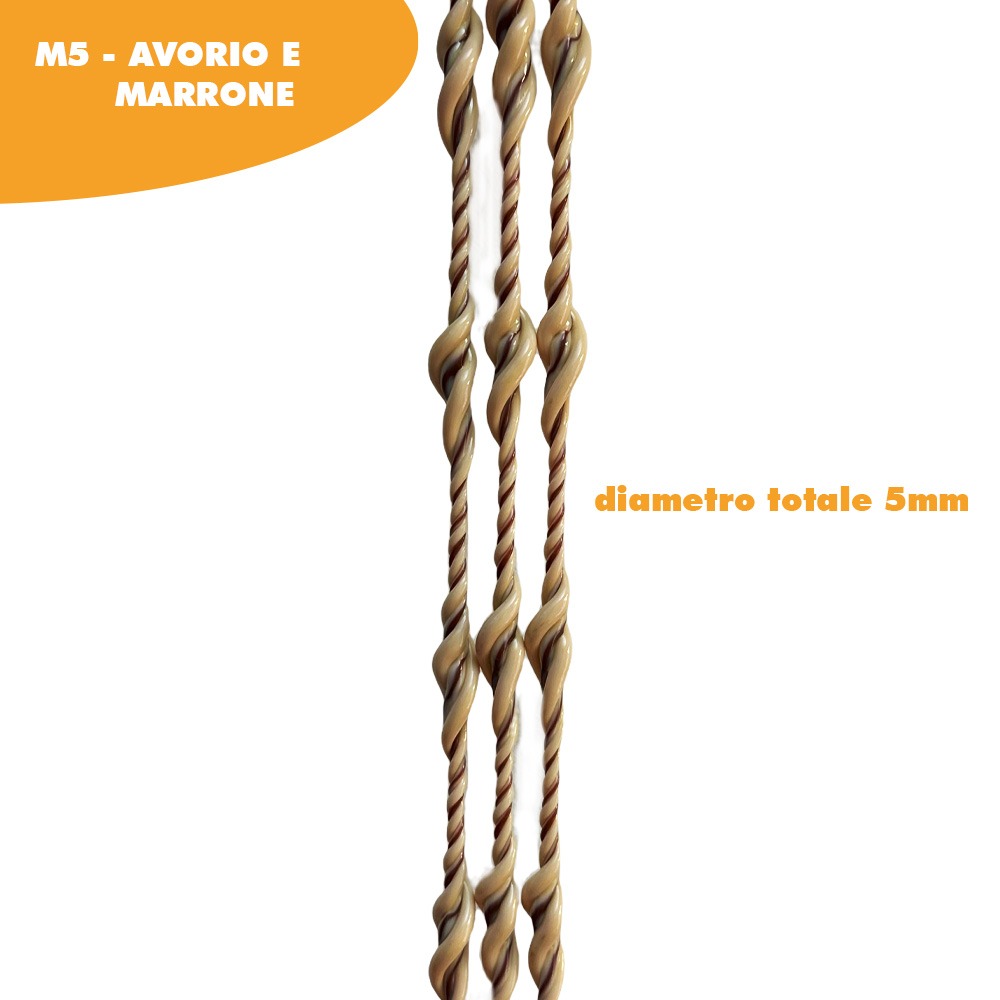 Modello tenda a fili forma conchiglia o nodo, larghezza totale circa 5 mm.