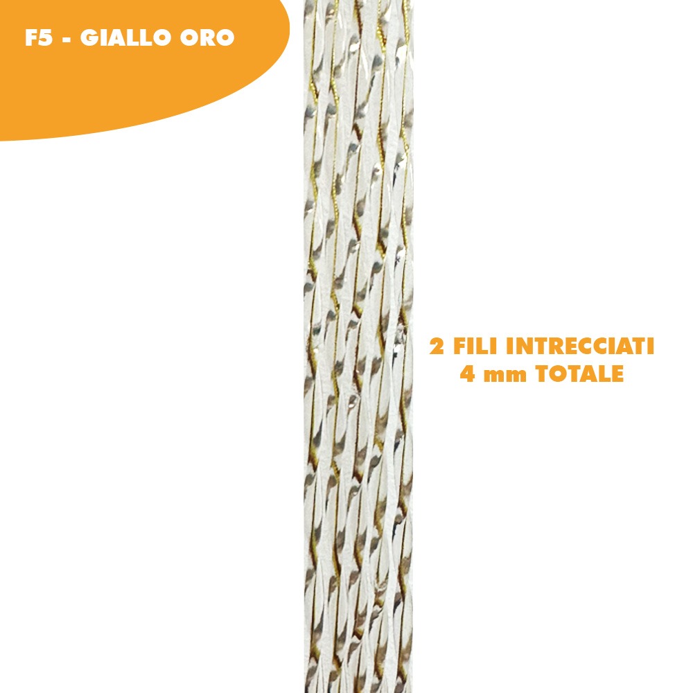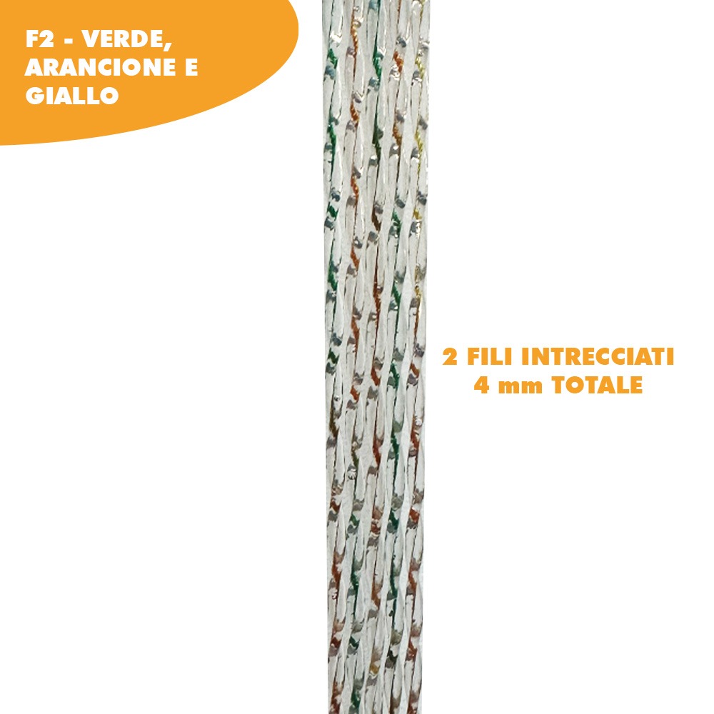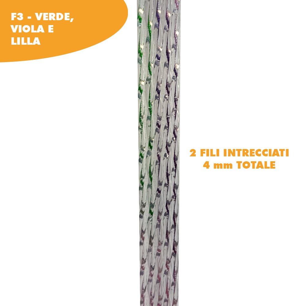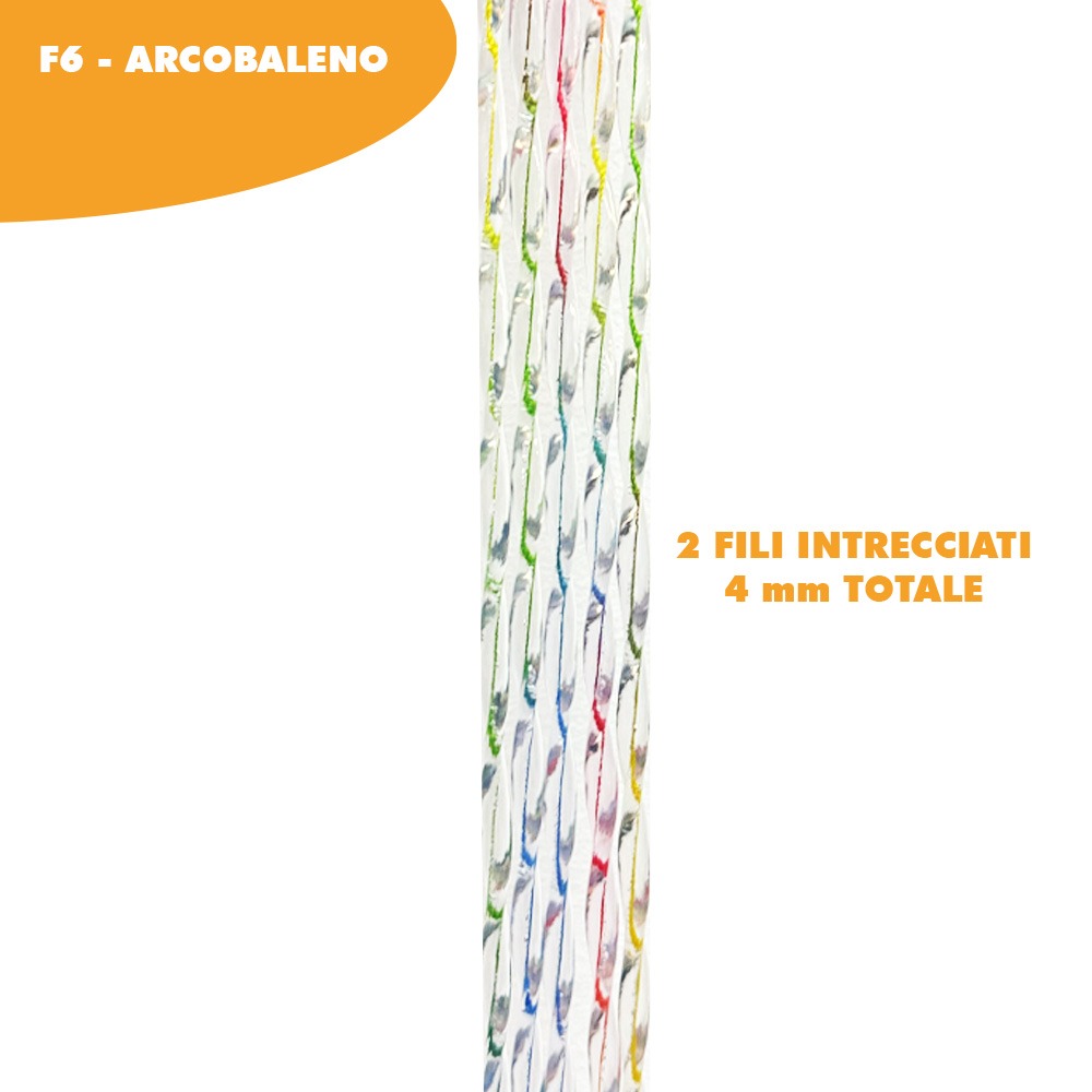 Diametro totale due fili intrecciati circa 4mm, con fili trasparenti e particolari interni colorati.