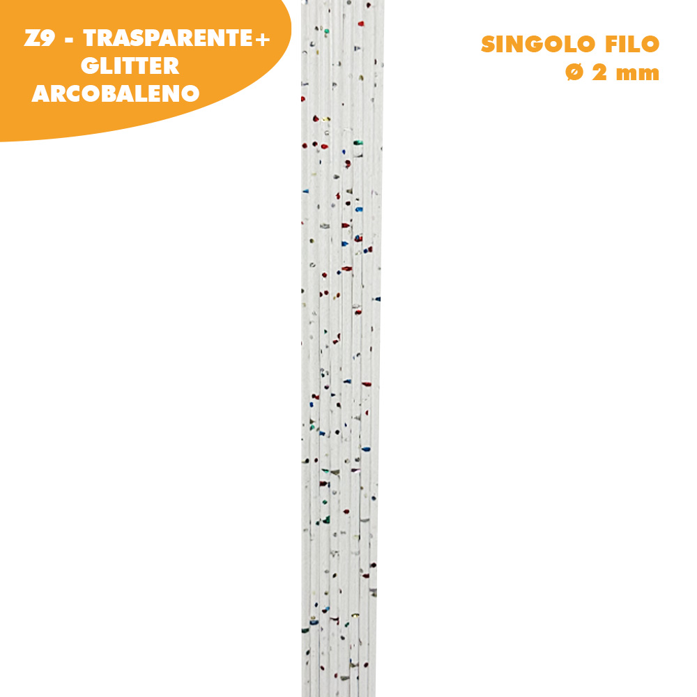 Larghezza totale (singolo filo) circa 2 mm in diversi colori e glitter.