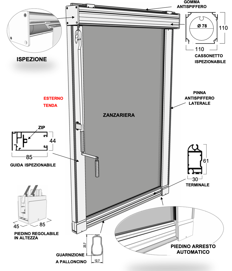 La tenda viene fornita con telo ZANZARIERA ed un sistema di blocco e sblocco automatico.