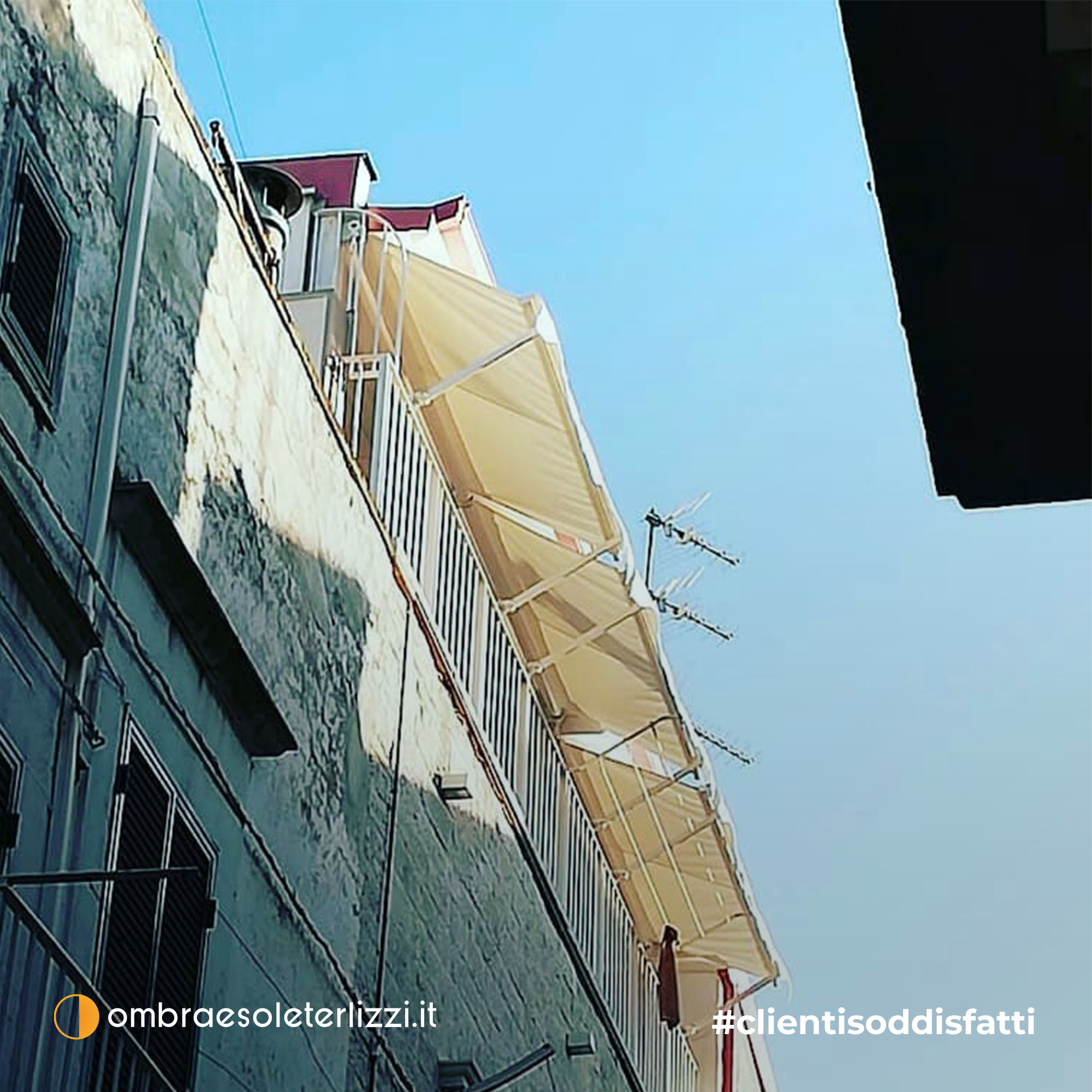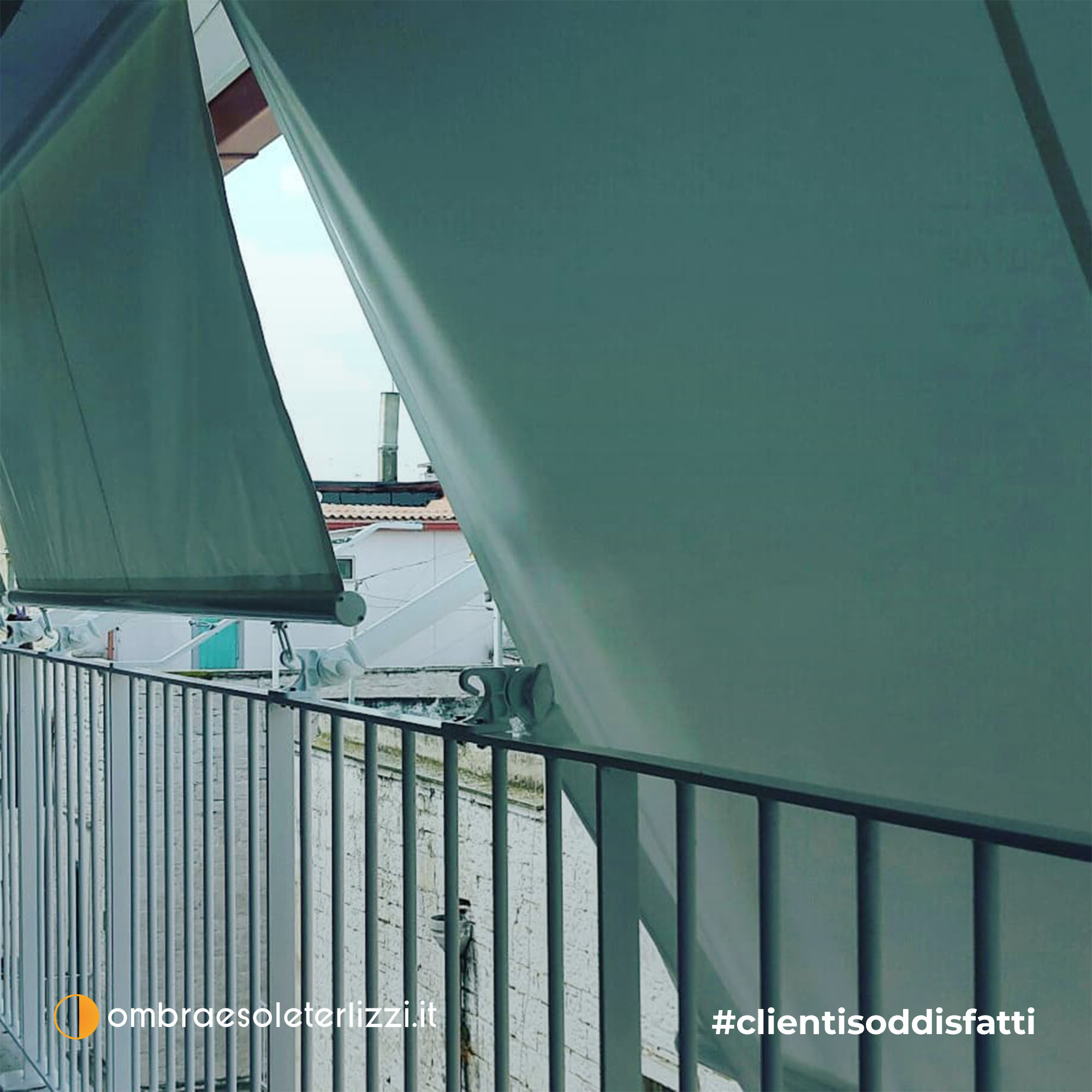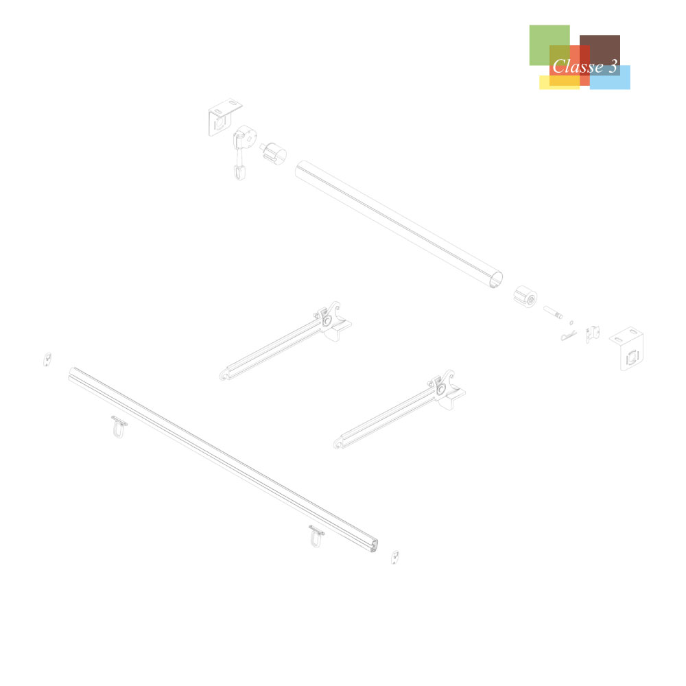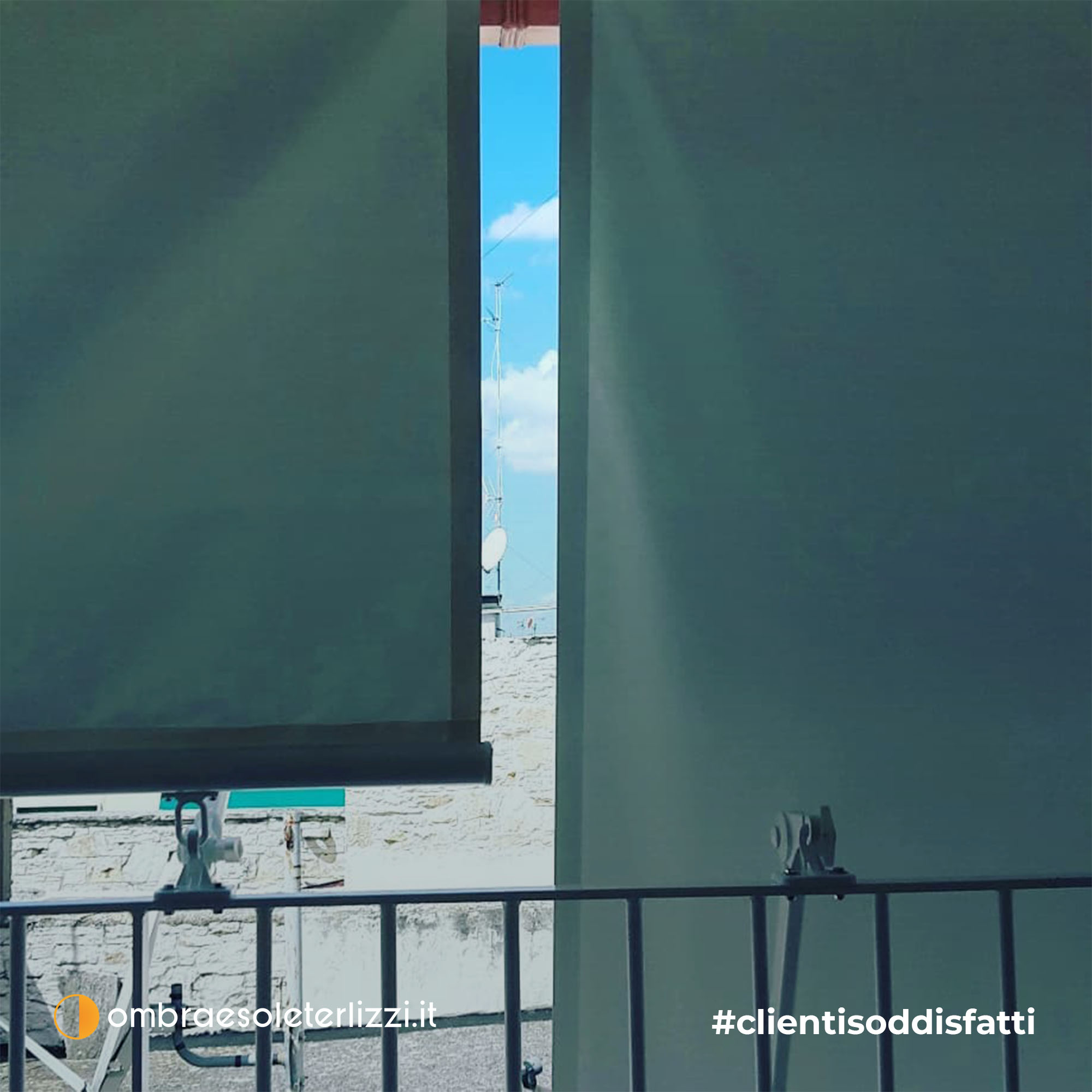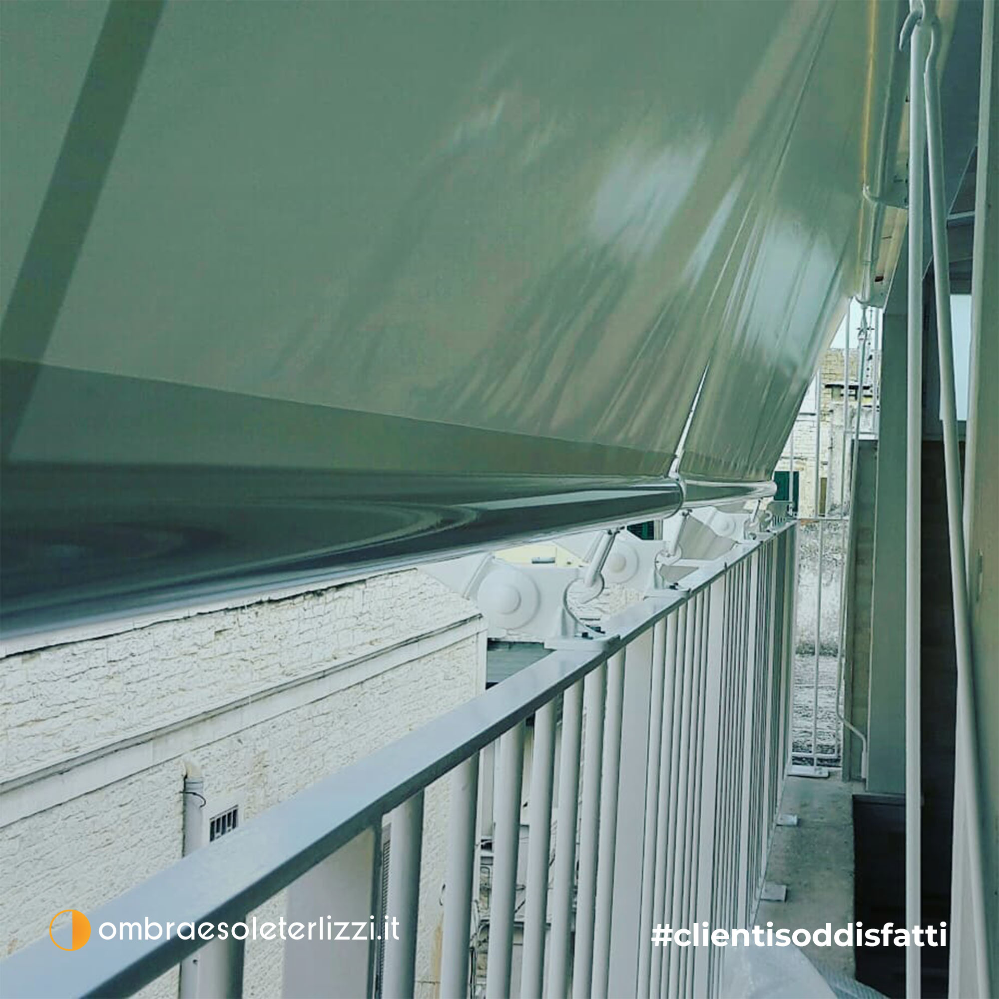 Tenda a caduta con braccetti in alluminio, accessori in nylon e profilo terminale.
