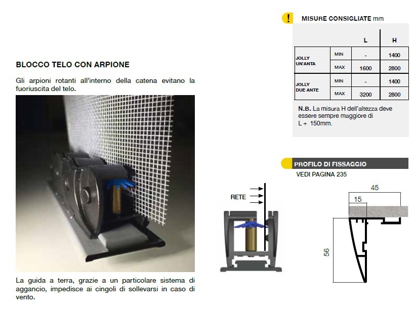 Gli arpioni rotanti allβinterno della catena evitano la fuoriuscita del telo.