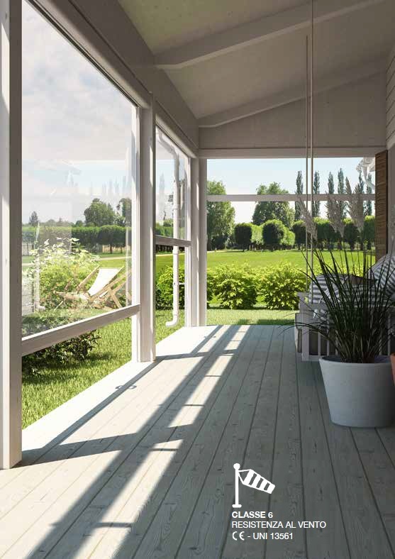 La possibilitΓ di realizzarla a due ante anche disposte a 90Β° fra loro la rendono particolarmente indicata per verande o strutture angolari.