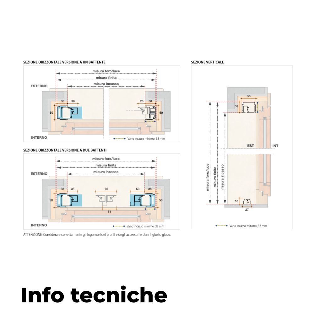 Adattabilità e personalizzazione: Disponibile in diverse configurazioni (1 battente o 2 battenti) e in varietà di finiture per soddisfare esigenze specifiche di misure e stile.