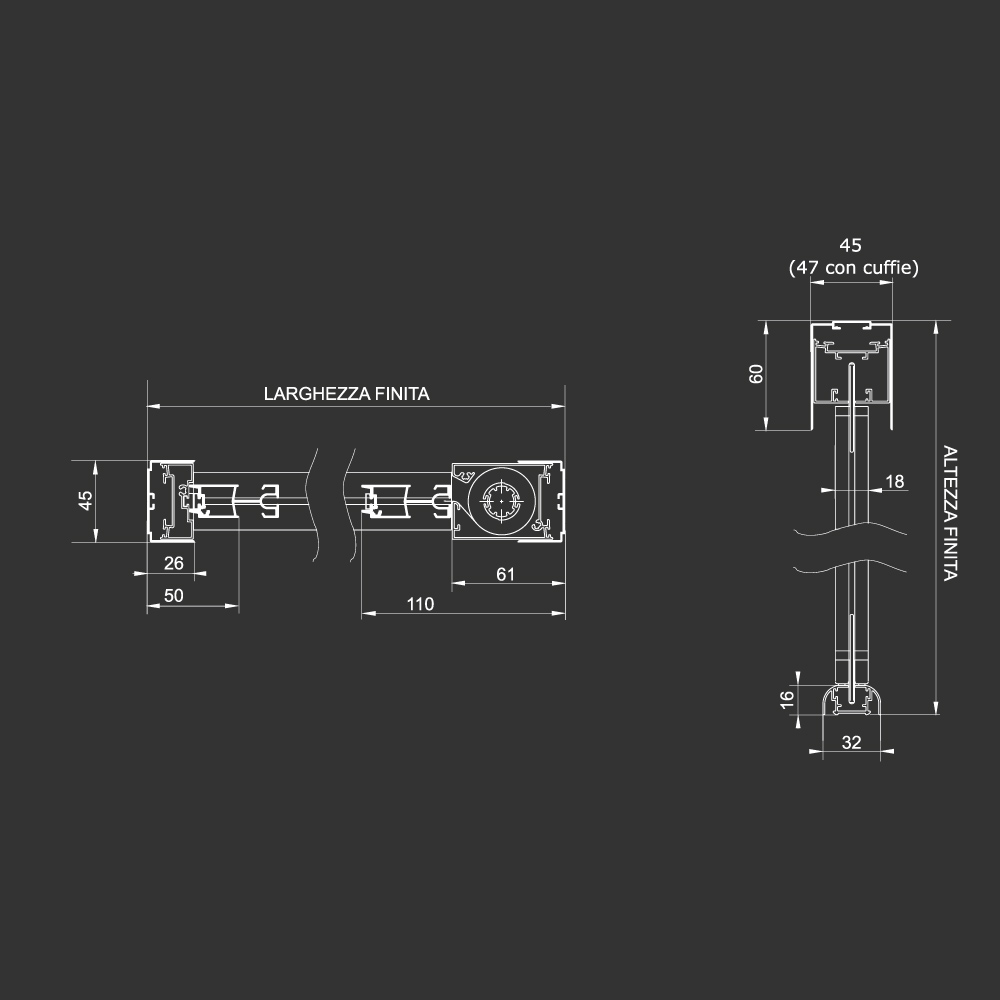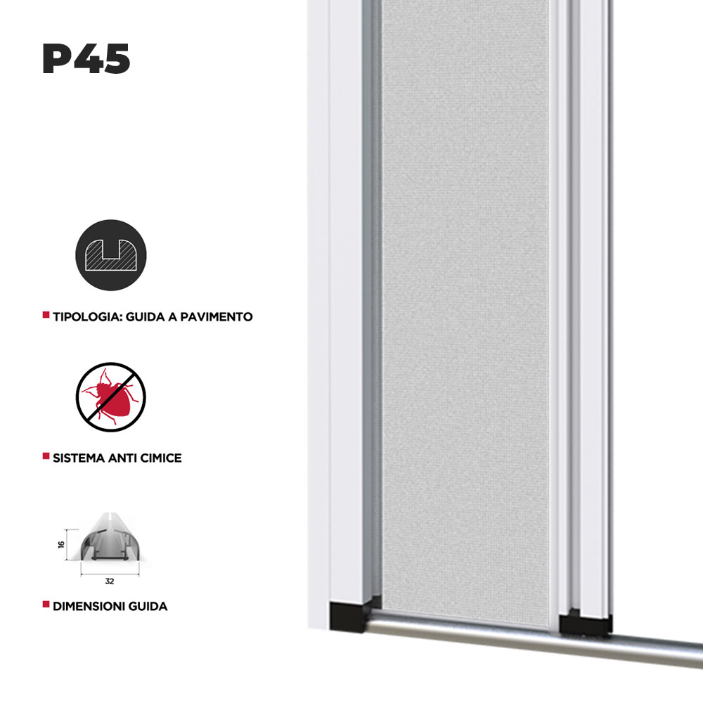 Modello: Zanzariera Levante P45 – con guida a pavimento