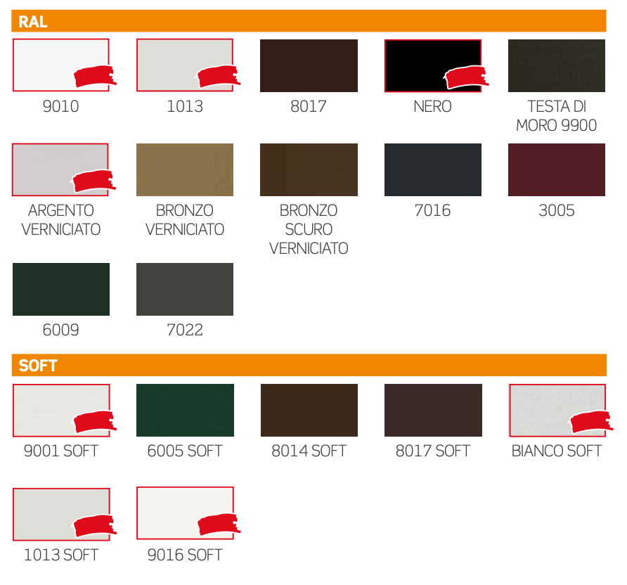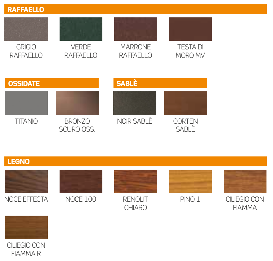 I telai delle zanzariere MV Line sono realizzati in solido alluminio e verniciati in colorazioni RAL standard, Raffaello e con effetti legno.