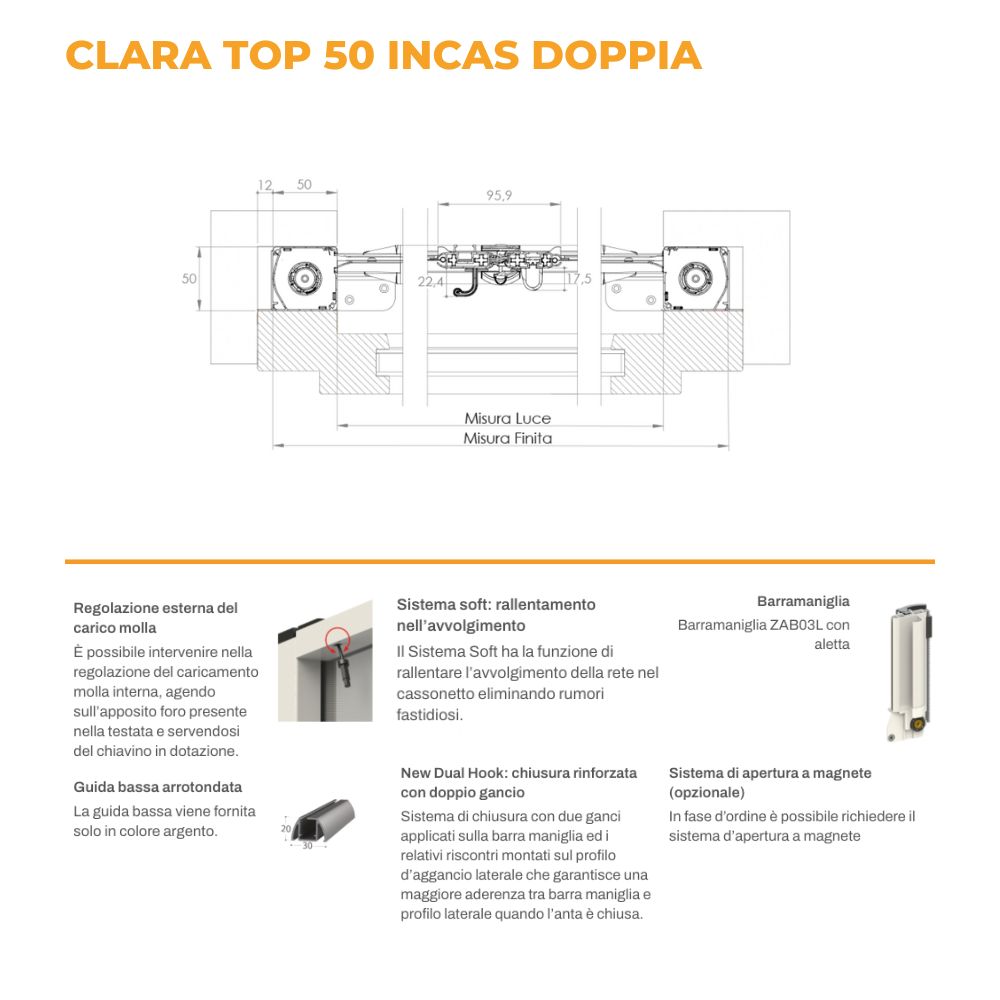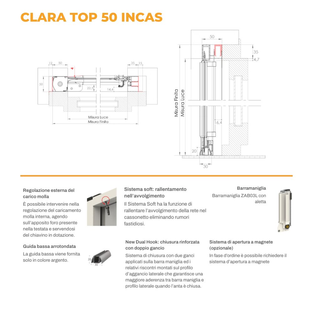 Personalizza la tua zanzariera Clara Top 50 Incas scegliendo accessori visibili nei colori bianco, avorio, grigio e nero. Lo spazzolino sarΓ coordinato per garantire una perfetta armonia estetica.