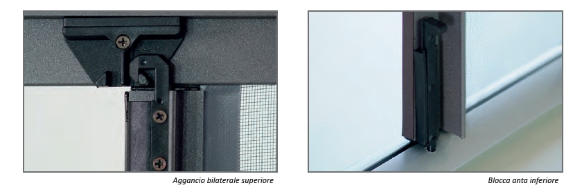 Zanzariera con doppio cassonetto a scorrimento laterale con avvolgimento a molla adatta per porta/finestra di grandi dimensioni è disponibile con cassonetto da 50mm chiusura magnetica o con gancio, compensazione di errore sia in larghezza che in altezza.