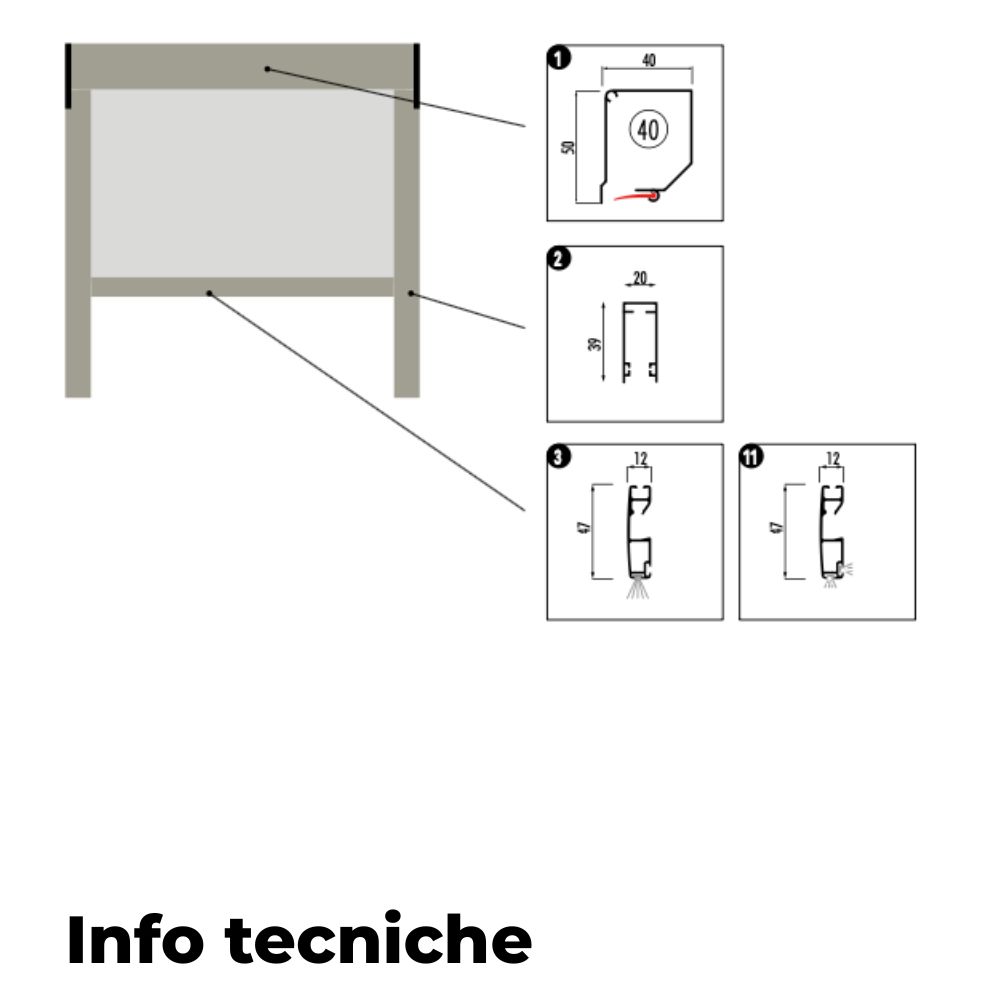 - Larghezza minima garantita con rallentatore: 60 cm per zanzariere con H max 180 cm