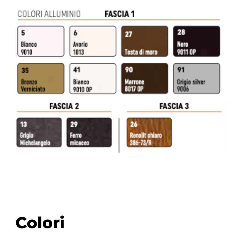 Gamma colori plastiche coordinata per lβintegrazione con il serramento.