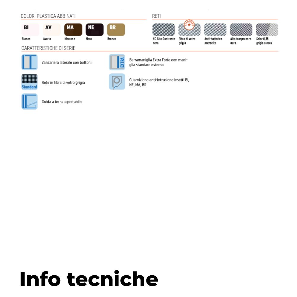 - Gamma colori plastiche coordinata per integrarsi con il serramento.