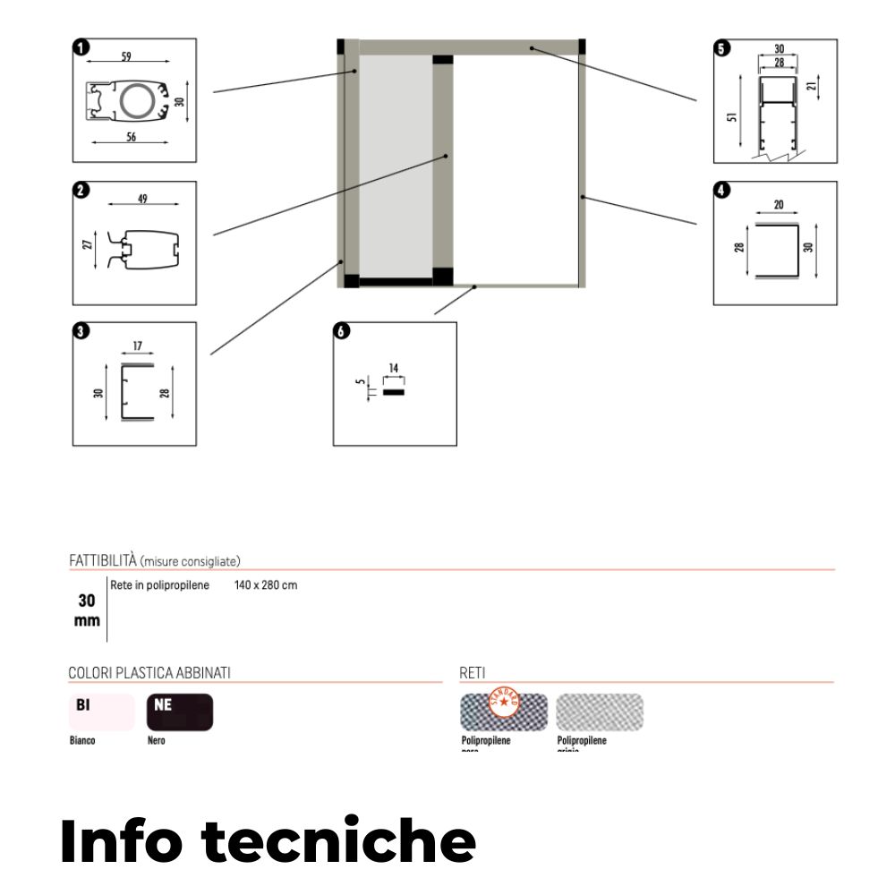 Componenti in alluminio certificati Qualicoat; rete PP con additivo UV per durata superiore