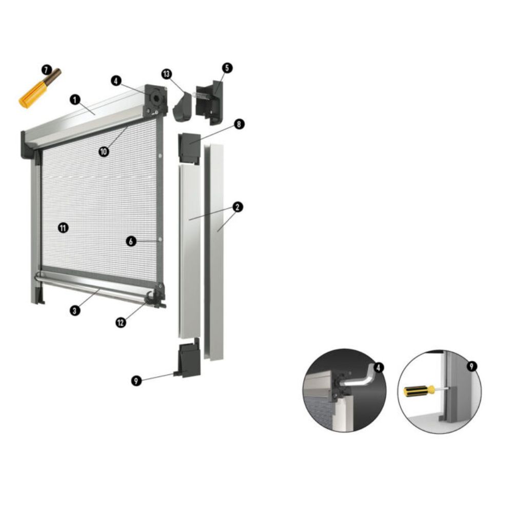 - Rete in Fibra di Vetro Grigia: Offre una protezione ottimale dagli insetti, con una rete di qualitร che non compromette la visibilitร nรฉ l’illuminazione naturale.