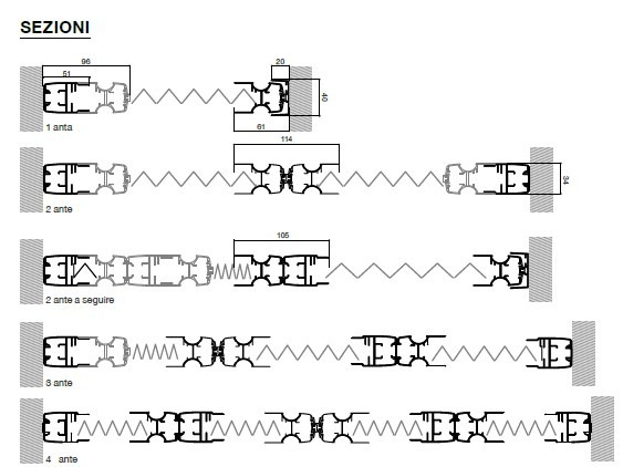È realizzabile a un’anta, due ante con chiusura centrale o a seguire, tre e quattro ante.