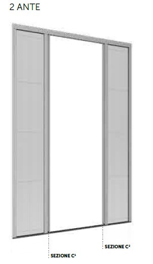 Rete plissettata disponibile sia nera (di serie) che grigia (su richiesta). Scorrimento laterale con chiusura magnetica. Binario inferiore alto 10mm (su richiesta è possibile avere un binario inferiore da 5mm disponibile esclusivamente nel colore nero). Realizzabile sia nella versione ad anta singola che ad anta doppia (con apertura centrale o decentrata).
