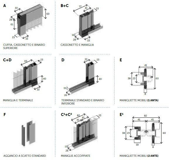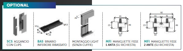 Scorrimento laterale e chiusura magnetica.Β Realizzabile sia nella versione ad anta singola che ad anta doppia (con apertura centrale o decentrata).