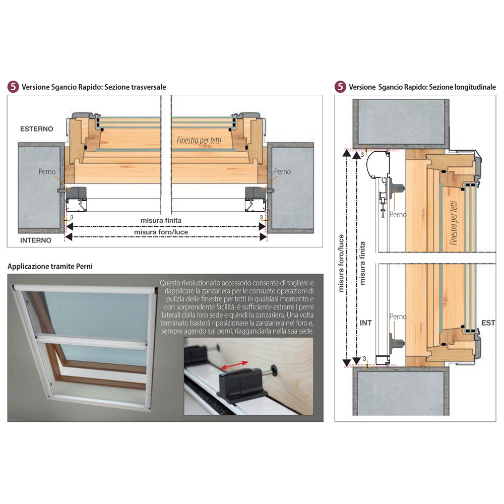 ZANZARIERA sgancio rapido REVOLUX BETTIO finestre tetto CON MOLLA CLIC-CLAK® 40