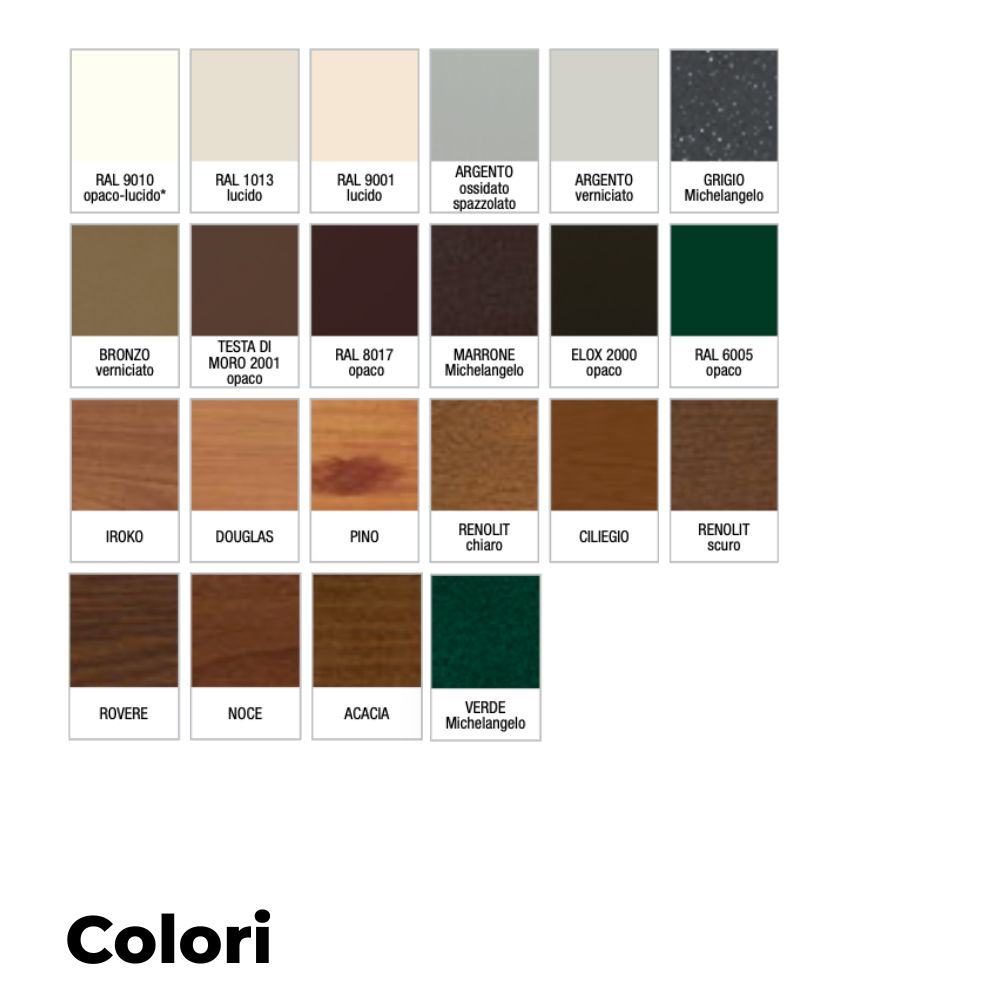 Ampia gamma colori alluminio: RAL opachi/lucidi, effetto legno, Michelangelo, ossidati, etc.