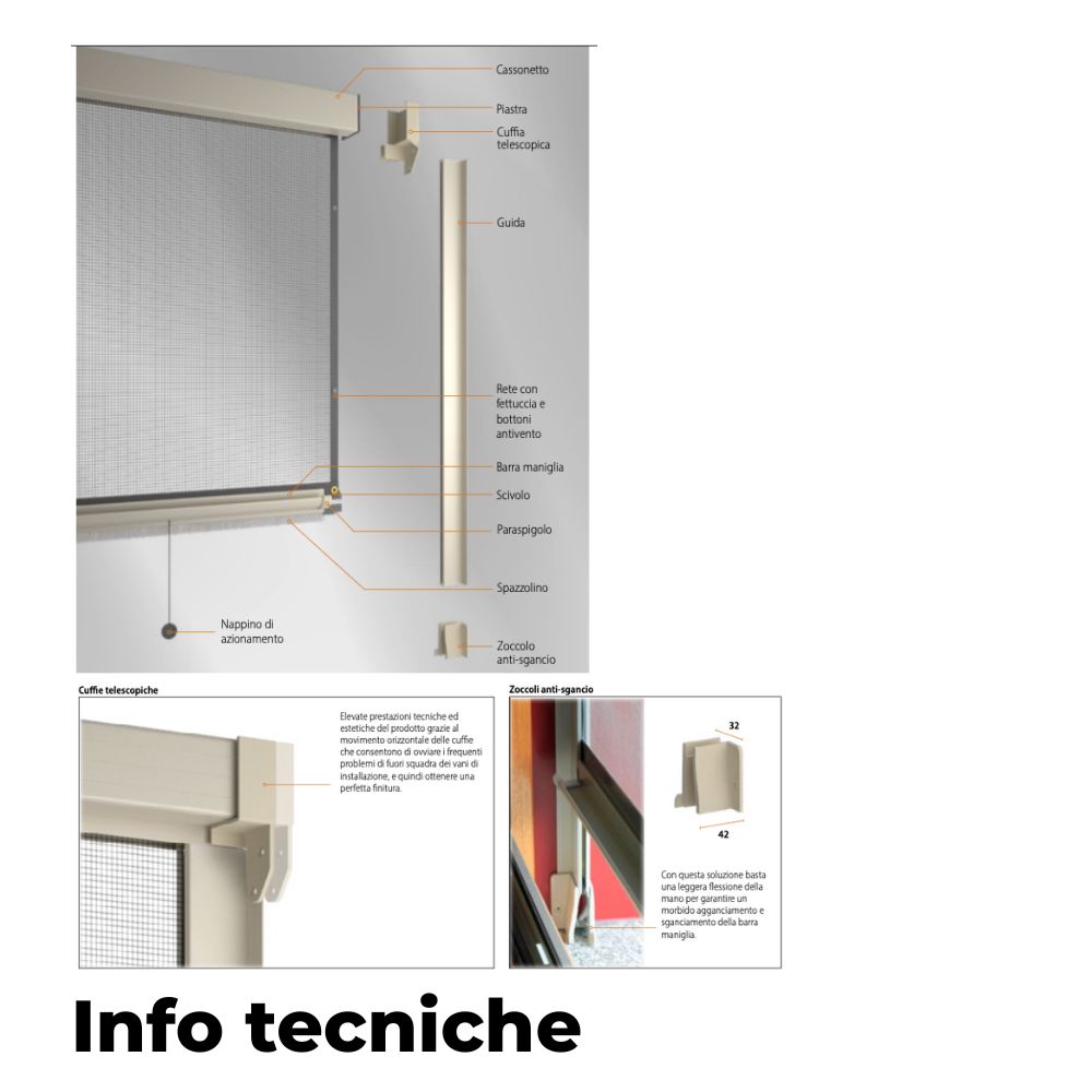 Rete antivento: dotata di bottoni che ne impediscono la fuoriuscita dalle guide.