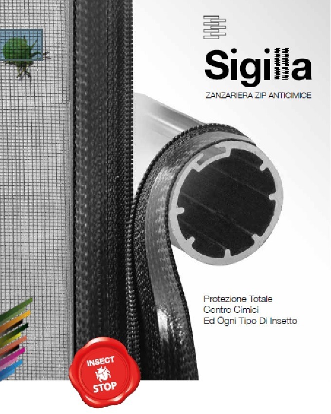 Sigilla 50 è una zanzariera a molla, con cassonetto da 50 mm a scorrimento verticale, adatta per porte e finestre. Fornita di serie con guide laterali telescopiche e chiusura aggancio cricchetto.